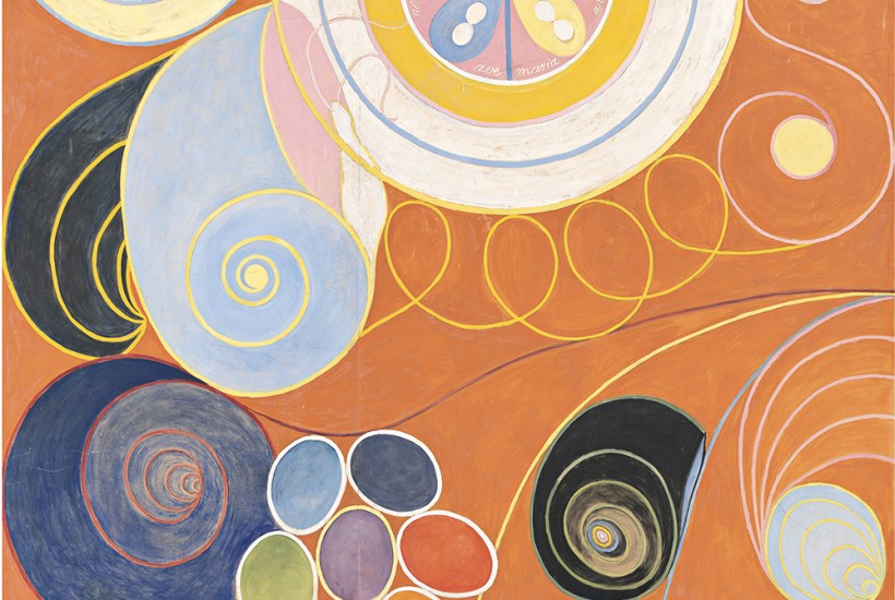 Entering the room devoted to Mondrian’s signature grids, you could be in a different exhibition. There’s a sureness of touch about these arrangements of lines and colours that feels inevitable: they have an authority you can’t argue with. Mondrian explored the occult ‘to understand things better’ but when he painted it was with the physical eye. Af Klint painted with the mind’s eye, attempting to see beyond appearances to ‘what lies behind everything created’. When you look at her compositions you wonder what they mean; when you look at his you wonder how they can possibly achieve such perfect dynamic equilibrium. Hitching these two very different artists together like the yin and yang of abstraction does neither of them any favours. They’re an odd couple.