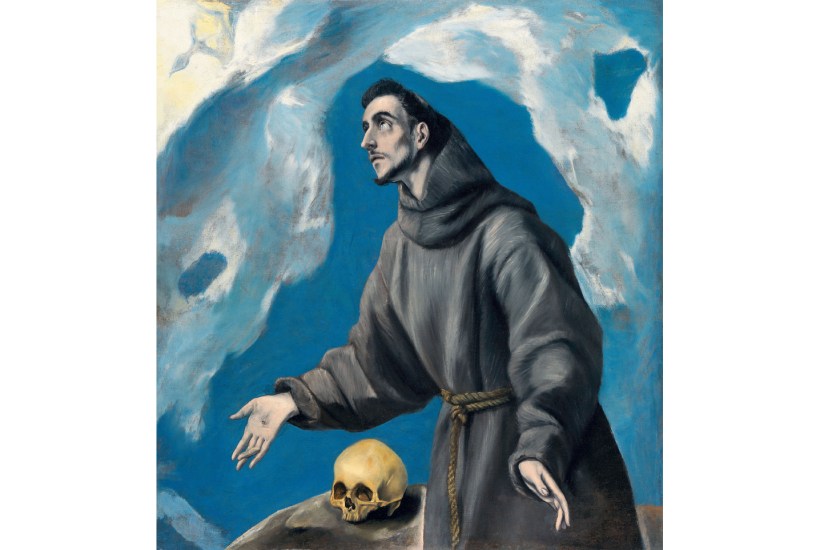 Thomas of Celano, who knew Francis, described him as of medium height with skinny legs, small feet and sticking-out ears – prominent in an early posthumous portrait on loan from the Sacro Convento. Francis’s cult inspired a flurry of image-making: as many as 20,000 paintings of him were produced in the century after his death. The 28 most famous are unable to travel, having been frescoed on to the walls of the Upper Church of the Basilica in Assisi by Giotto and collaborators in 1290s. But Sassetta’s eight dramatic ‘Scenes from the Life of Saint Francis’ (1437-44) illustrate several of the same episodes, sticking close to St Bonaventure’s authorised biography. Caravaggio takes more liberties with his ‘Saint Francis in Ecstasy’ (c.1595), visualising the stigmatised saint fainting into the arms of a handsome, half-naked angel. El Greco, whose workshop specialised in paintings of the subject, dispenses with props and homes in on the face and hands of ‘Saint Francis receiving the Stigmata’ (1590-95), while Luc-Olivier Merson constructs an elaborate set for his theatrical vision of a reformed ‘Wolf of Gubbio’ (1877), complete with halo, meekly accepting a scrap of meat from a nervous butcher outside a shop hung with an array of mouth-watering carcasses. Stanley Spencer in his ‘Saint Francis and the Birds’ (1935) pictures a roly-poly saint in dressing gown and slippers with an audience of farmyard geese and chickens, in a proper spirit of Franciscan humility if not Giottesque elegance. The Royal Academy didn’t see it that way; the hanging committee rejected the picture and Spencer resigned in protest.