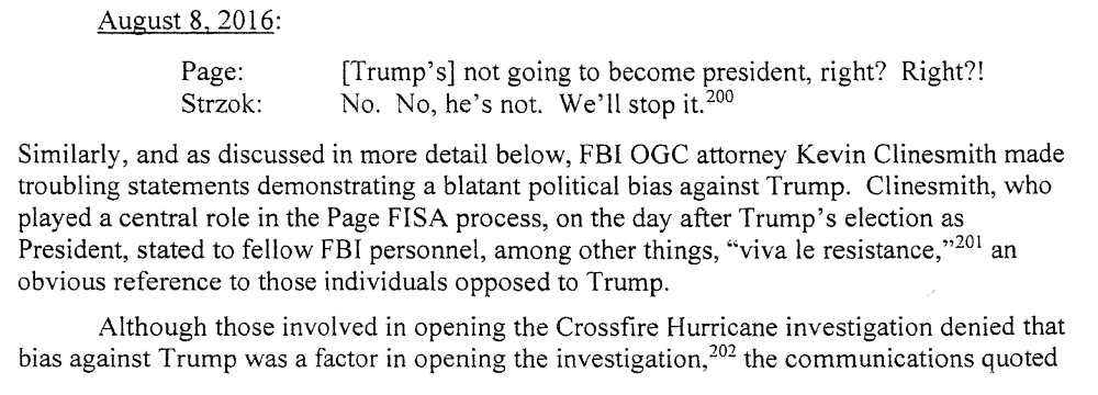 To add, ‘There was significant reliance on investigative leads provided or funded (directly or indirectly) by Trump’s political opponents.’