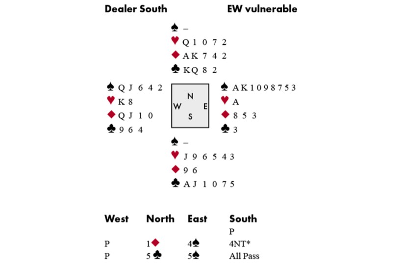 As South, I can’t think why I didn’t open a weak 2♥️ – put it down to the heat. 4NT showed two places to play. I probably should have bid 6♣️ – but it was Pairs and I hoped 5♠️ might go down. It turned out to be a lucky view. But when I led the ♦️9, my partner won with the ♦️K, cashed the ♦️A and tried to give me a ruff. Declarer’s club now went away on the ♥️K. Could North have found the club switch? Possibly, but how could she know declarer didn’t have seven spades and the ♣️A? Chatting about the hand later to Simon Cope, he suggested a solution: with a doubleton and no trumps, lead low as if from three! If only I’d thought of that. It’s not a hand I’ll forget…for at least 12 years.