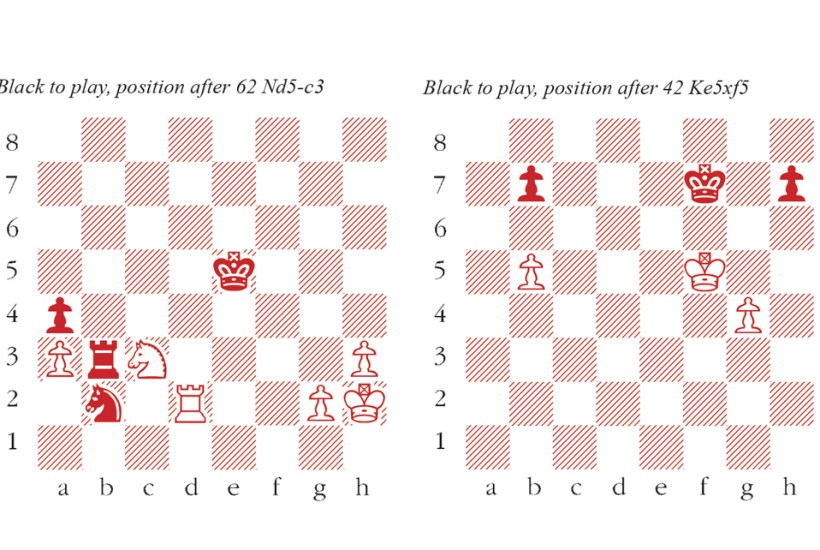 The reigning English women’s champion found herself in danger in the following pawn endgame. For example, 42…h6 43 b6! forces Black to give ground, and after 43…Kg7 44 Ke6 White will win the race. In fact, 42…Kg7! is the only drawing move. Then 43 Ke6 Kg6 leads to a race, where White promotes on b8 and black promotes on h1, with a draw.