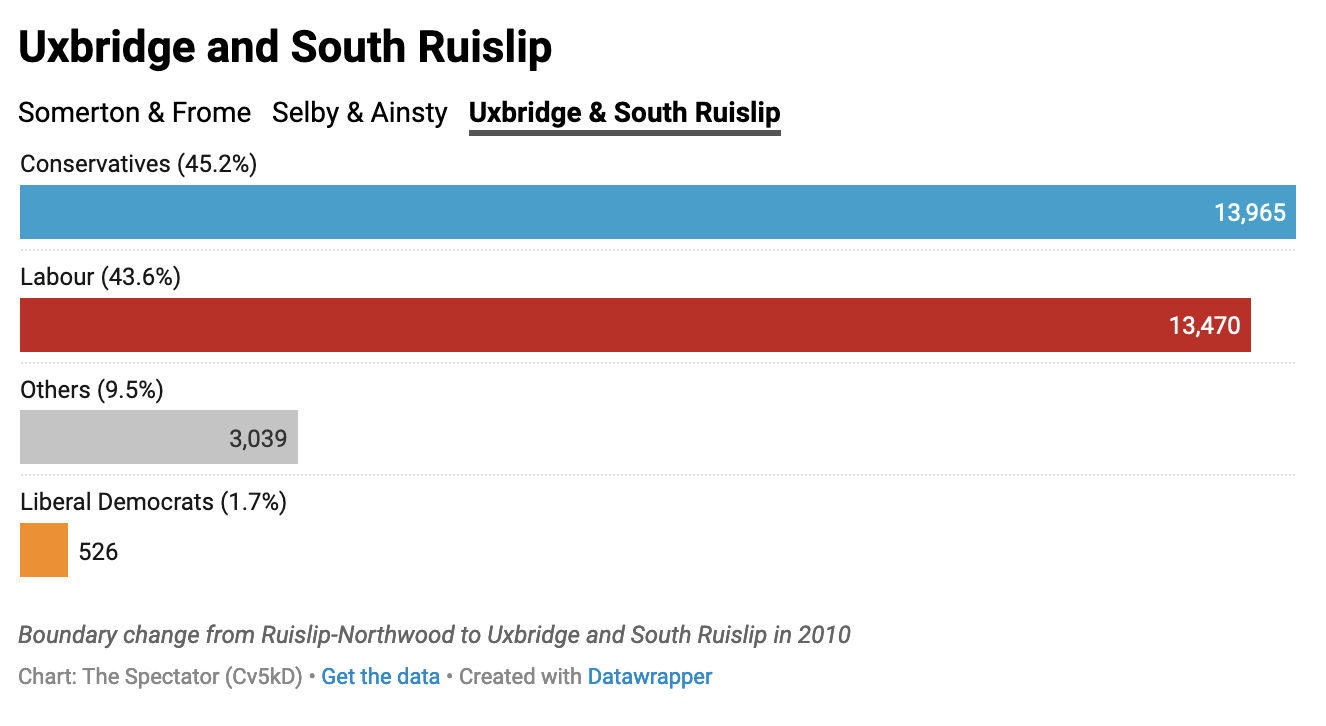 The Conservatives held their seat in Uxbridge and South Ruislip. The final count was: