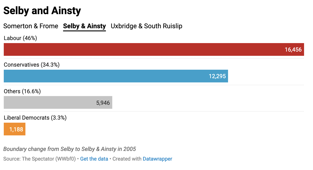 Labour has won the Selby and Ainsty seat in North Yorkshire, by a majority of 4,161. The final count was: