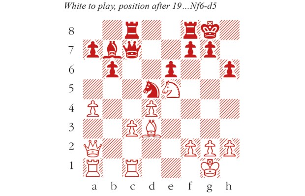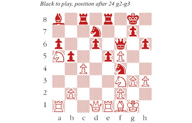 Jones met Michael Adams in the first round, and put up stubborn resistance. In the diagram below, 25…e5! was best, when White lacks a comfortable response to threats of g7-g5 and f7-f5. Advancing the g-pawn first backfired: