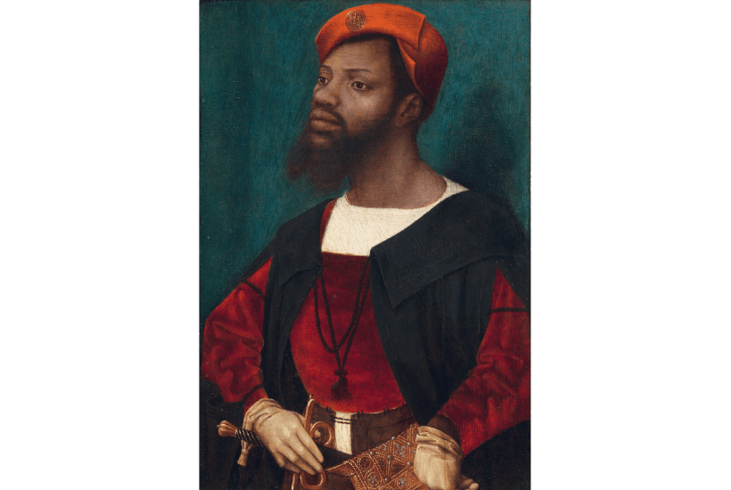 Due to the dearth of images of Africans in European art, there are very few paintings. The Fitzwilliam owns a portrait of a pineapple grown on Decker’s Richmond estate in 1720 and fed to King George I, but the only portraits of Africans it can summon are a few engravings of heads by Wenceslaus Hollar and the figure of Balthazar in Taddeo Zuccari’s ‘Adoration of the Kings’ (1555-60). To compensate, it has borrowed two rare portrayals of Africans as gentlemen of independent means: Jan Mostaert’s ‘Portrait of an African Man’ (c.1525-30) from the Rijksmuseum, thought to be the first painted portrait of a black man, and ‘Portrait of a Man in a Red Suit’ (c.1740-80) by an unknown artist from the Royal Albert Memorial Museum, Exeter. Neither sitter is named, but from his sword and rich apparel Mostaert’s African is believed to have been a bodyguard to Charles V or a courtier of Margaret of Austria, while the man in the natty red suit bears a strong resemblance to Olaudah Equiano, the former slave whose graphic memoir published in 1789 was instrumental in generating support for abolition.