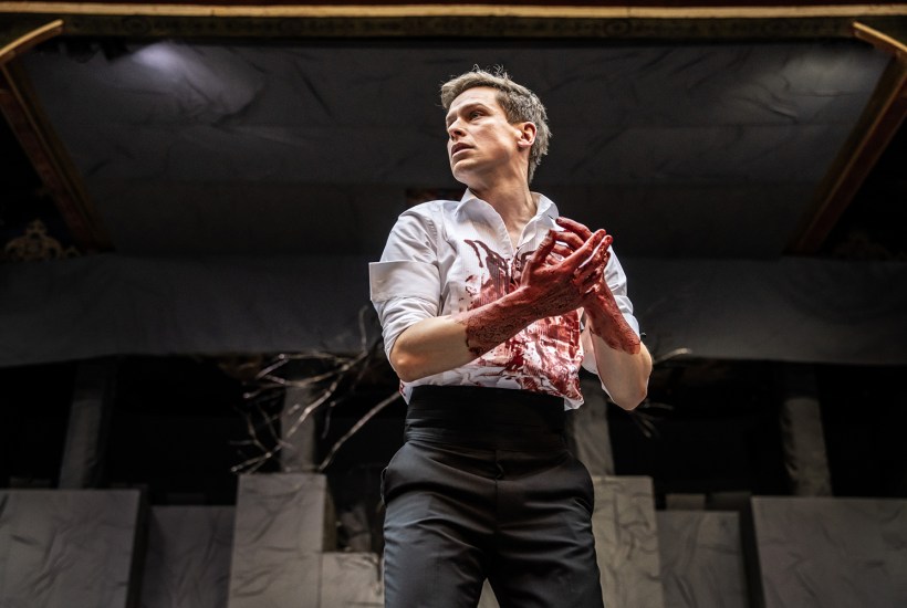 Macbeth at the Globe wants to put us at our ease and make us feel comfortable with the play’s arcane world of ghouls, hallucinations and murderous prophecies. Abigail Graham’s up-to-the-minute production offers a few nods to history, like the eagle masks worn by the three witches, but for some reason they speak in dense cockney accents and wear biohazard suits. And they’re all men. The Scottish soldiery favour black body armour like SAS recruits or Metropolitan Police officers. And King Duncan, benefitting from equality legislation, has been transformed into an alpha female: ‘Queen Duncan’, as everyone calls her. She strides on to the battlefield in the opening scene sporting a beautiful cream trouser suit and a salon-perfect ash-blonde hairdo. A puzzling costume for a tribal leader who just spent the day hacking her enemies to pieces with a longsword and a flanged mace.