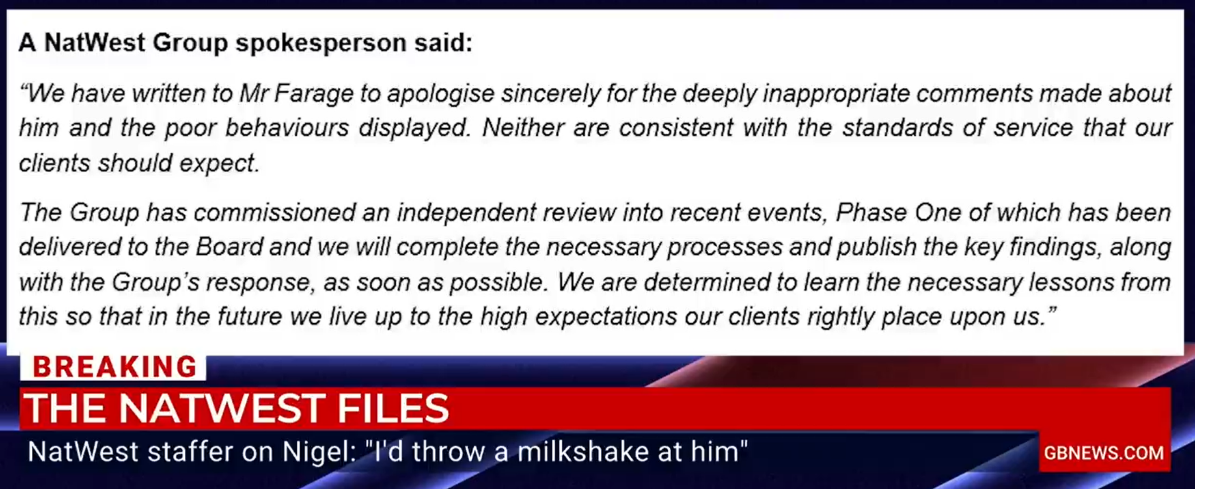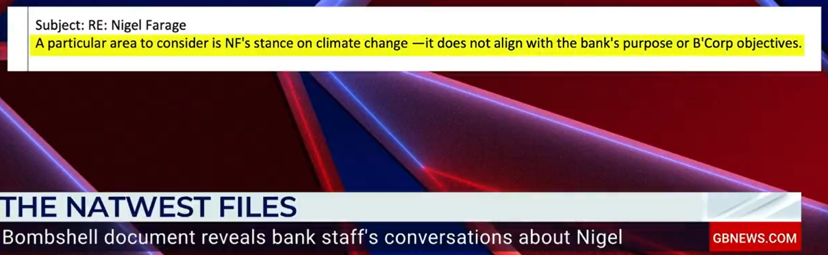 Details from the 600-page Data Subject Access Request (DSAR) show NatWest Group employees engaged in juvenile, Twitter-esk attacks on the former Brexit leader.