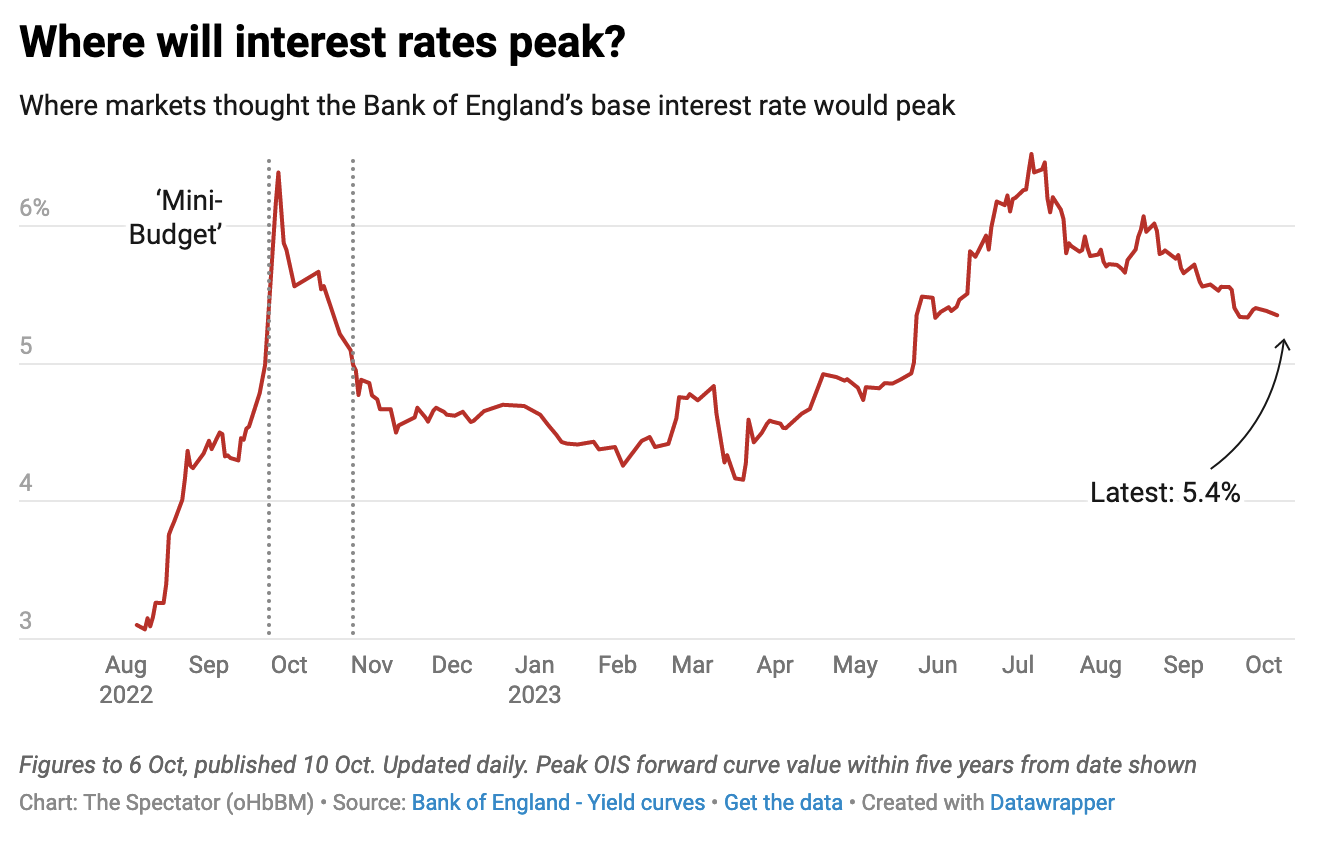 This was the market expectation in the UK around July this year – but it has been coming down in recent months, and now sits closer to 5.5 per cent. The Bank’s most recent decision to hold rates at 5.25 per cent, rather than opt for a fifteenth consecutive rate hike, helped contribute to that fall. It seems, then, that the IMF’s calculations are out of date – and only likely to be relevant again if there is a new economic shock that drives prices up again.