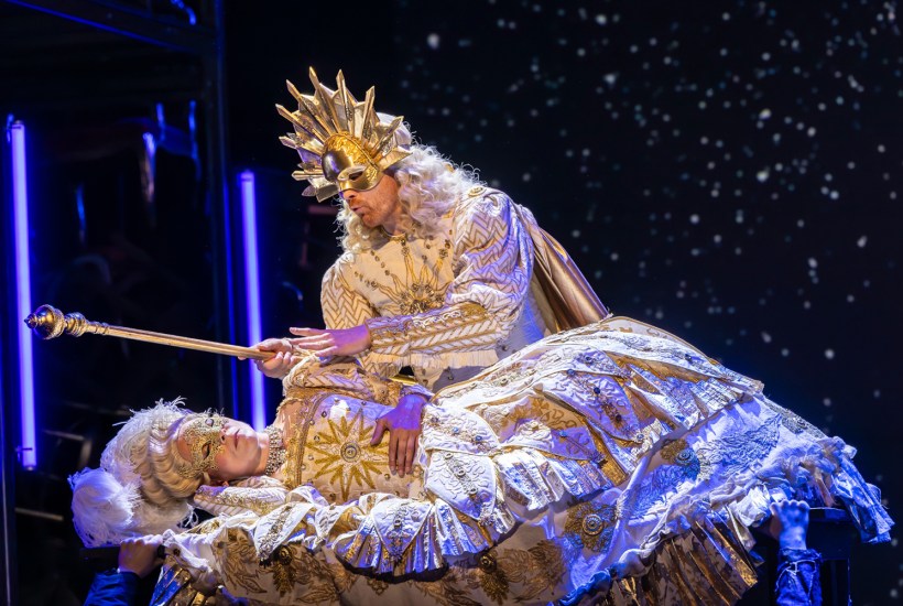 Anyway, Diktat gets his comeuppance and trundles off inside that caravan while everyone sings and dances in celebration. Again, that seems very much in the spirit of the 17th century; you don’t want to overthink these things. At various points you’ll see a man-sized baby in a colossal pram, dancers dressed as wolves (the choreography, by Denni Sayers, is like a bubbling stream of visual energy), evil clowns and god-like figures in gilded headpieces strutting their stuff in eye-popping baroque court dress (seriously, the full Louis Quatorze. They went there).