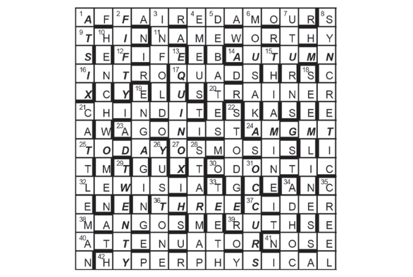 The puzzle appeared on 23 September 2023. The unclued lights reveal TWENTY TWENTY-THREE’S AUTUMN EQUINOX OCCURS TODAY AT SIX-FIFTY AM, GMT.