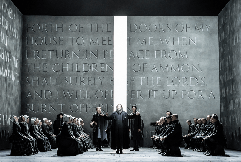 London’s two opera houses have been busy staging non-operas. Handel’s English oratorio, Jephtha, is his final exercise in a form that only existed because it was, explicitly, not opera (Georgian theatres needed something to play during Lent). We know better today, and dramatised reboots of Handel oratorios are proliferating, possibly because – unlike his actual operas – they give the chorus something to do. Katie Mitchell directed Theodora at Covent Garden last year. Now Oliver Mears has had a bash at Jephtha and has encountered the same basic problem. Operas seduce; oratorios preach. These are explicitly Christian, implicitly patriotic works, and what self-respecting contemporary director could allow that?