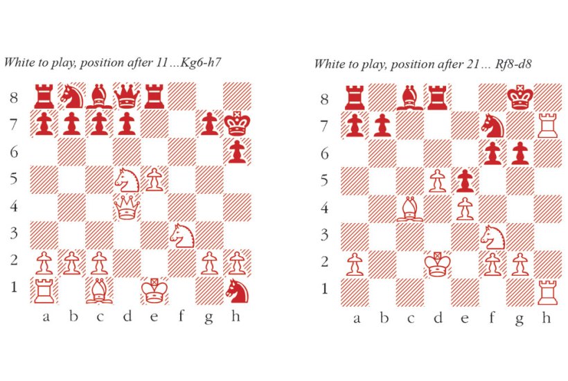 1 e4 e5 2 Nf3 Nf6 3 d4 Nxe4 4 dxe5 Bc5 5 Bc4 Nxf2 6 Bxf7+ Kxf7 7 Qd5+ Kg6 Black would like to play 7…Ke8 but after 8 Bg5 Be7 9 Bxe7 Qxe7 10 Kxf2 White’s easy development promises an advantage. 8 Qxc5 Nxh1 9 Nc3 h6 Radjabov is a whole rook up, but he is not so naive as to have given no thought to his king safety. It is likely he expected a draw by repetition, as has occurred a few times after 10 Qc4 Kh7 11 Qe4+ Kg8 12 Qd5+. But he was clearly unprepared for Theodorou’s next move, which asks more questions to the defender. 10 Nd5 Re8 11 Qd4 Kh7 (see diagram) 12 Bxh6! Played instantly, so Theodorou was almost certainly still following his pre-game analysis. Radjabov’s next move seems to be the decisive mistake. Instead, 12…Nc6 probably survives, though Black must walk a tightrope right to the end, e.g. 13 Qf4 Rf8 14 Ng5+ Kxh6 15 Qh4+ Kg6 16 Qh7+ Kxg5 17 O-O-O g6 18 h4+ Kf5 19 g4+ Kxe5 20 Qg7+ Kd6 21 Nb4+ Ke6 22 Re1+ Kd6 23 Rd1+ with a draw. gxh6 13 O-O-O Re6 14 Nf6+ Kh8 15 Nh4 The attack is overwhelming. d6 16 Qf4 Kg7 17 Qg4+ Kh8 18 Ng6+ Kg7 19 Nf8+ A neat finale. Black resigns on account of 19…Kxf8 20 Qg8+ Ke7 21 Qg7 mate.