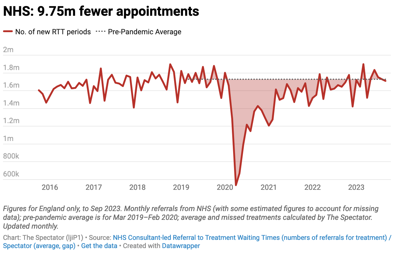 Sunak’s scepticism is being rapidly vindicated as we see the side-effects of asking people to ‘protect the NHS’ by not using it – with almost ten million missed appointments. Then there are wider consequences of higher disease burden and excess mortality that are only now becoming clear.