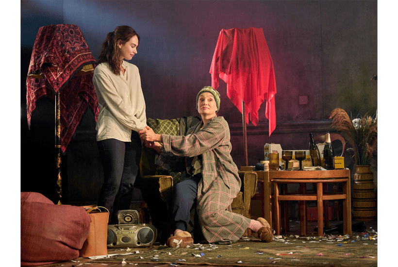 After nearly an hour of stage time, Elaine is ready to narrate her life story with Chris on duty as her stagehand. Chris is necessary because Elaine delivers her story standing on a makeshift rostrum decked out with fairy lights, dressed as a carrion crow. These details suggest a playful satire about the pretentious delusions of ageing thesps but this show takes itself rather seriously. It’s a piece of absurdism that doesn’t know how absurd it is. The structure is feeble. Bits of information are delivered in one scene and repeated in the next. We’re twice told how to pronounce ‘Lyonesse’. The characters rarely interact properly because the script asks them to share gossip about off-stage characters who are hundreds of miles away or dead.