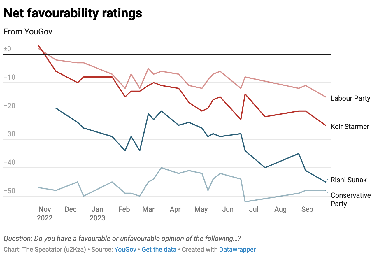 Sunak, by contrast, continues to follow the old nostrums of ‘centre groundism’, constantly triangulating between two voter tribes who despise each other and increasingly despise him as well. According to YouGov, 80 per cent of people who voted Conservative in 2019 wanted to see the Armistice Day pro-Palestine march banned. After a month of mob calls for jihad, intifadas and the destruction of the state of Israel this should not come as a surprise to any student of Conservative opinion.