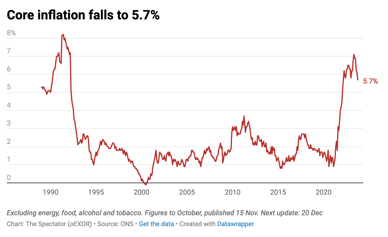 None of this means there aren’t still worrying trends in the data: core inflation (which excludes more volatile prices like energy and food) remains stubbornly high, at 5.7 per cent on the year in October, down from 6.1 per cent in September.
