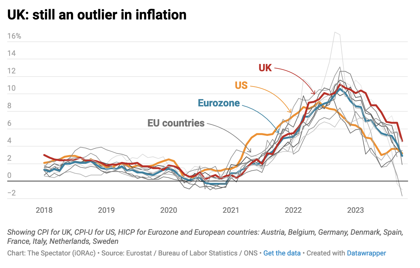 How much credit can – and should – the government take for this achievement? Growth is stagnant, debt and the NHS wait lists are rising and thousands continue to arrive on small boats (a pledge we’ll hear a lot more about later this morning, when the Supreme Court’s decision on the Rwanda policy is unveiled). Given these other four priorities aren’t going quite to plan, it is rather unsurprising that ministers want to boast.