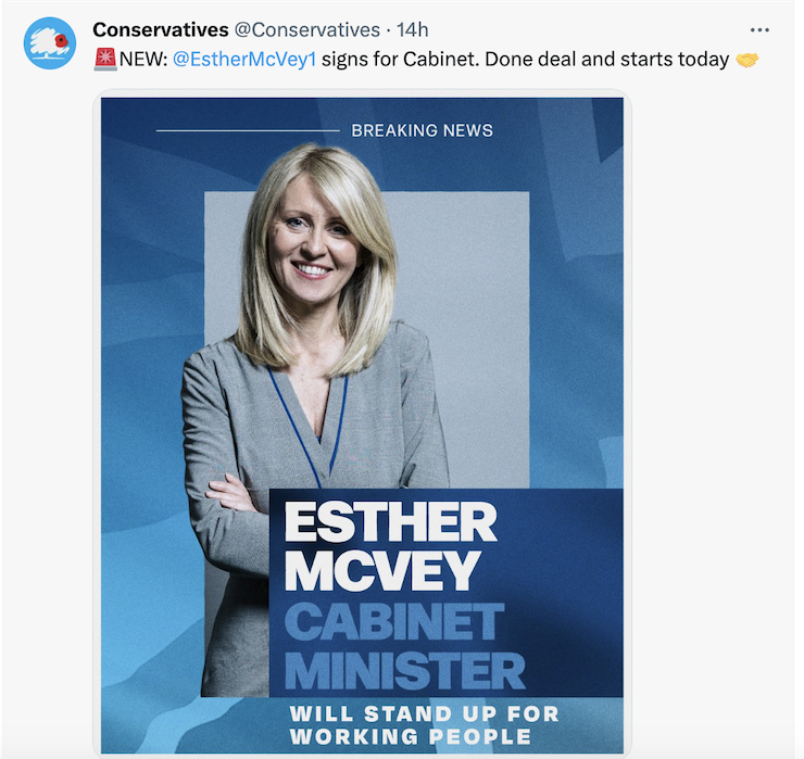 How Esther McVey’s appointment was announced (Credit: Getty images)