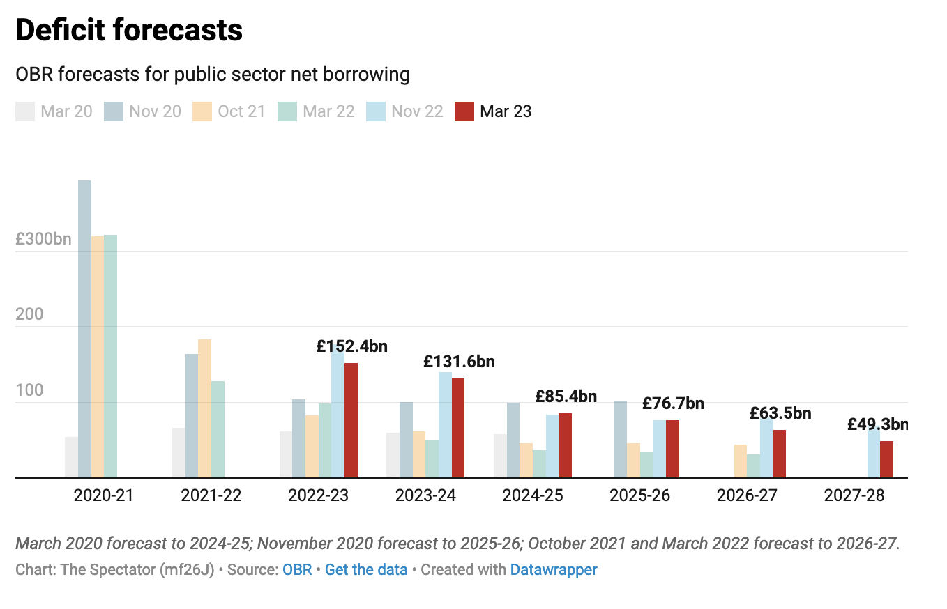 For some, borrowing less than expected means there is room for tax cuts. But until recently, Hunt was not in this camp. Rather, he was more inclined to note that the deficit remains at a substantially higher level than it did pre-pandemic. Furthermore, the £100 billion burden that has been created by soaring debt servicing payments has plunged the public finances into even more chaos. It’s the nightmare that kept his boss up at night: then-chancellor Rishi Sunak knew that any surge in inflation, and then interest rates, would cause havoc with the public finances. It’s the one Hunt is having to deal with now.
