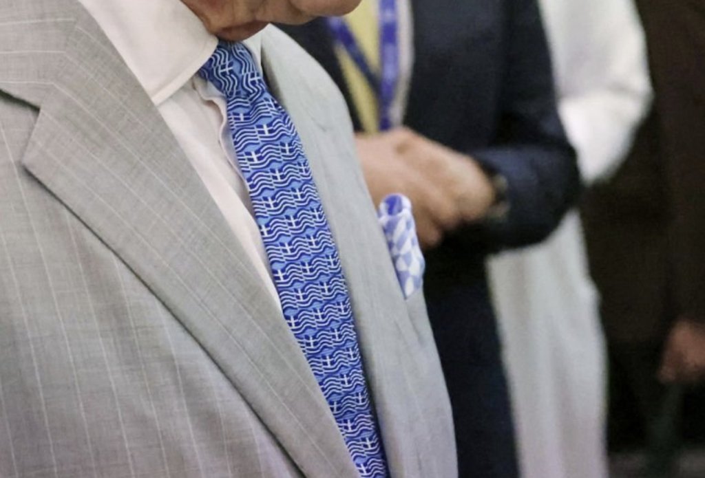 Worth looking closely, the King today, wearing a Greek flag tie at COP, after days of a simmering diplomatic row btw UK and Greek PM ??? pic.twitter.com/CEwaFmBYW4