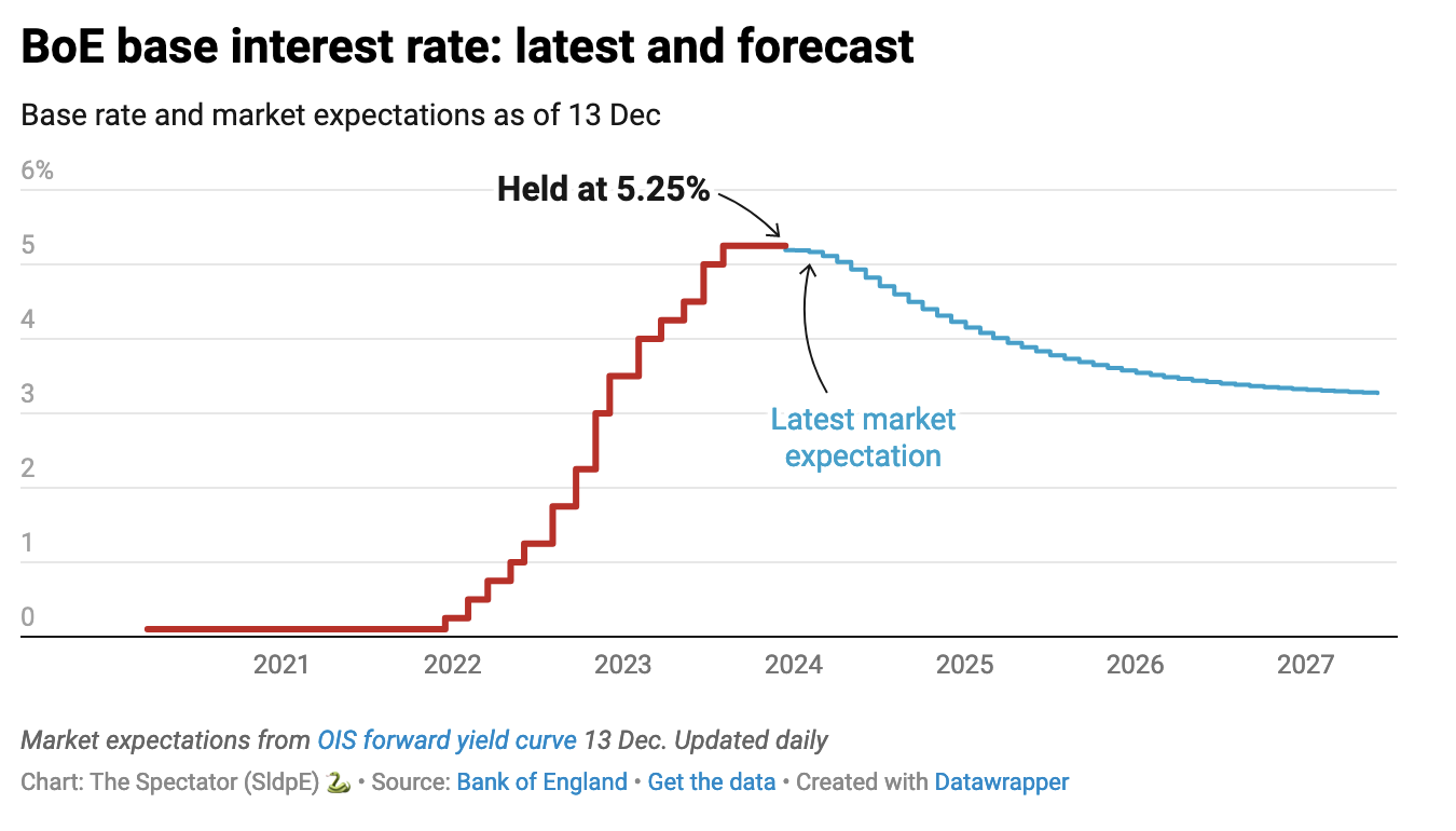 The Bank of England has held interest rates at 5.25 per cent for the third consecutive time. This was the expected outcome of the Monetary Policy Committee’s latest vote, but it wasn’t unanimous. There were six MPC votes to hold rates but three to raise it to 5.5 per cent. No one voted to cut. This speaks to the biggest challenge the Bank faces right now: how to balance getting the inflation rate back to target without tipping the economy into recession. But markets expect the next movement to be downwards – so much so that mortgage rates are already falling in anticipation.