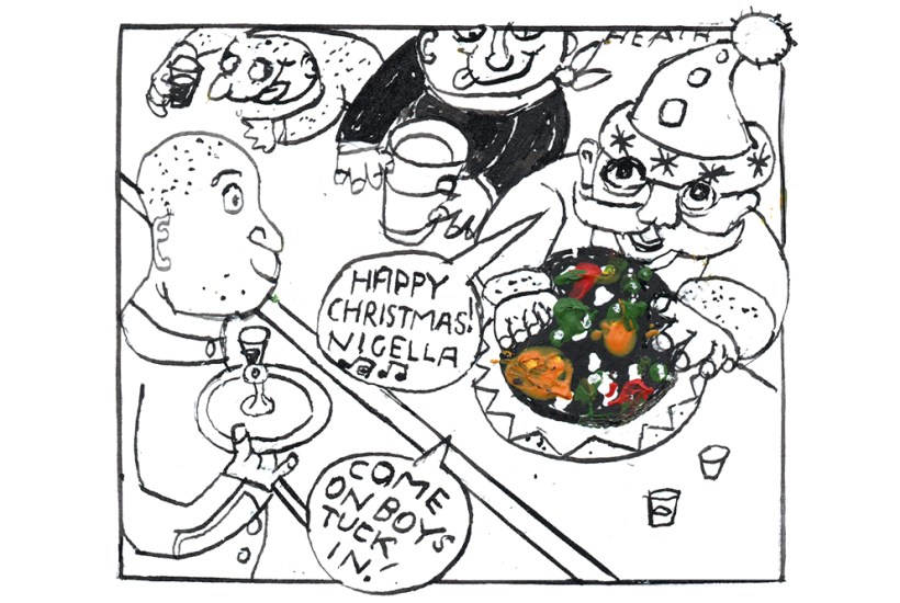 The trend is represented by Nigella Lawson, who is making something called a Winter Wonderland chocolate and raspberry cake instead. ‘Much as I happen to love a slice of dense, damp Christmas cake, especially when eaten with a crumbly slice of good, strong, sharp cheese, I am surrounded by those who abominate dried fruit in all its seasonal manifestations,’ she writes. ‘If no one in your family likes dried fruit, there’s no point having a Christmas cake gathering dust.’