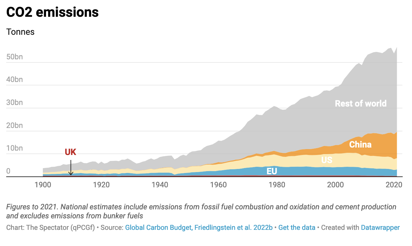 The UK is too small for its emission reduction to make a measurable difference to the global warming trajectory. That doesn’t mean we should do nothing, but it should temper the language used. To say ‘we act or we fry’ is misleading, not believed and undermines confidence in the environmental agenda in general. Sunak and Claire Coutinho, his Energy Secretary, are trying to move this into a more credible place.
