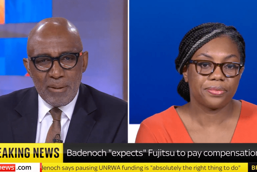 The fallout from the Horizon IT scandal continues. Badenoch confirmed to Trevor Phillips that the Post Office chair Harry Staunton had been asked to leave on Saturday night, despite only holding the position for one year. Phillips asked if Badenoch had picked the wrong person for the job. Badenoch said she hadn’t appointed Staunton, but ‘difficulties with the board’ had meant she had to intervene. She added that the Post Office has issues that ‘go well beyond the Horizon scandal’, and hinted that there could be further changes, although she claimed she didn’t want to do ‘HR on TV’.