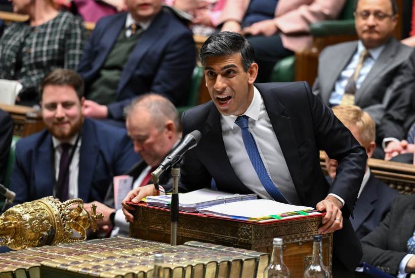 By now Rishi was talking with all the conviction of a menswear dummy. ‘I’m happy to go over it for him again,’ he pleaded. Sir Keir duly swung at him again.