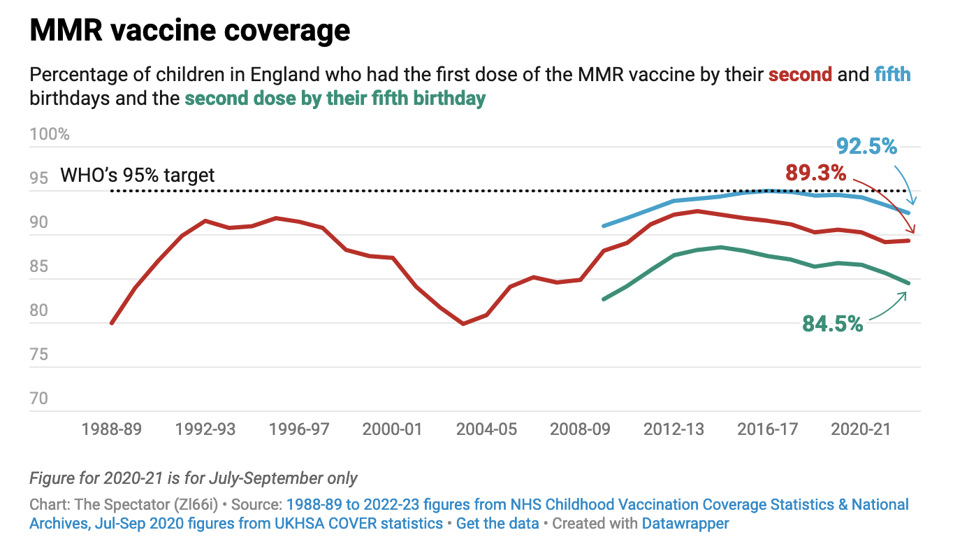 But there is more to this story. Scares such as the widely discredited study by disgraced doctor Andrew Wakefield, which wrongly linked the vaccinations to autism in the late-1990s, haven’t helped. Nor will the government’s approach to the Covid-19 jab, which effectively forced, through restriction of movement, young, healthy people to be protected against a disease which presented little personal danger. Setting aside the benefits of reaching the Covid herd immunity threshold, vaccine mandates played into the hands of conspiracy theorists who seek to tarnish all immunisations.