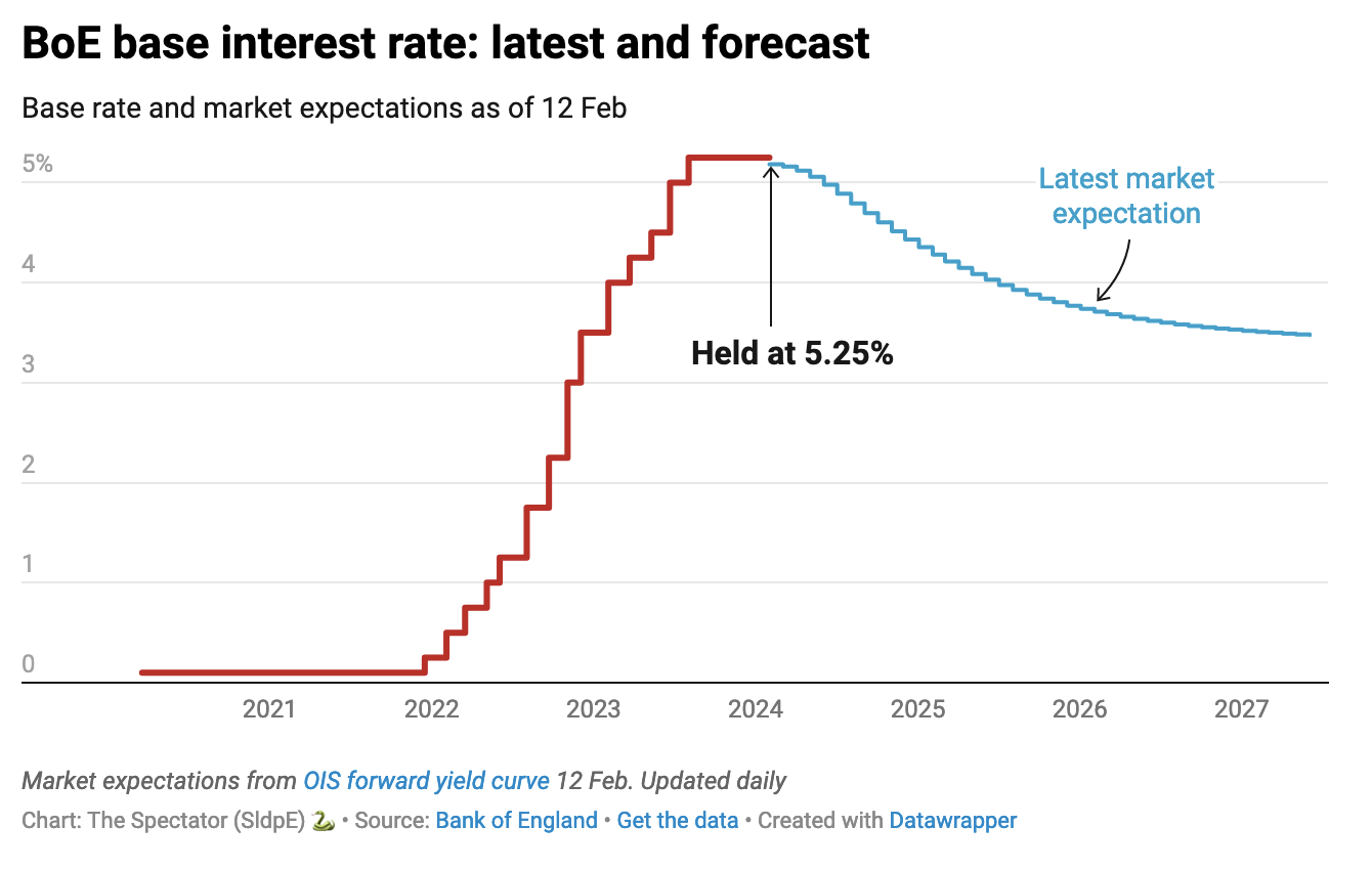 The most telling sign is wage growth, which has slowed, but not by as much as the Bank had predicted. Regular average earnings (excluding bonuses) fell from 6.6 per cent to 6.2 per cent, slightly above the Bank’s 6 per cent forecast. While wage growth fell behind the inflation rate for far longer than it outpaced it, the Bank still (controversially) considers this a key indicator of what’s driving price hikes in the UK.