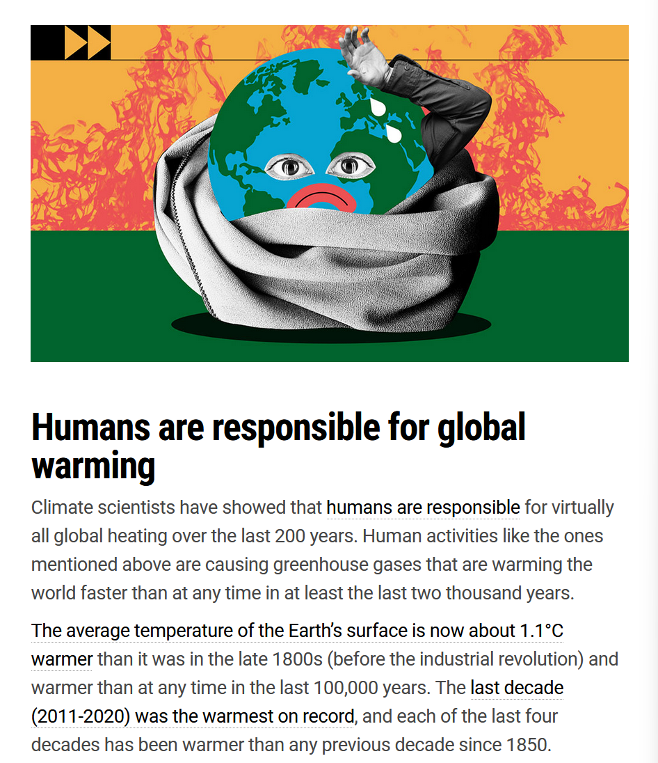 In a cynical appeal to authority, the message comes up under the heading of ‘Climate Action’ – which is a political, not a scientific position.