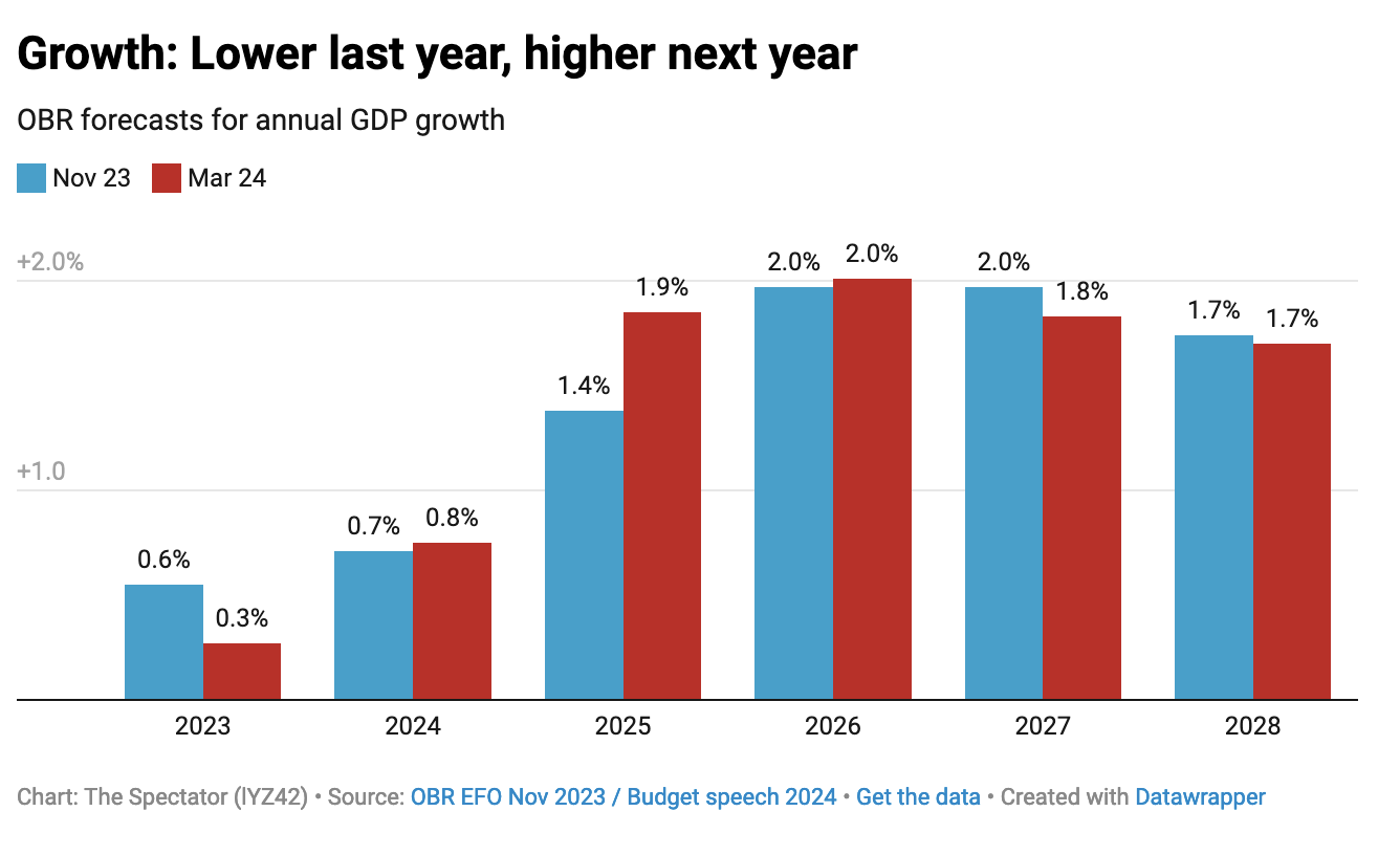 On several metrics, Sunak is right. January’s growth figures, coming in at 0.2 per cent, suggest the UK is likely to consign its technical recession to the end of last year. Forecasters expect April will return the inflation rate back to the Bank of England’s target of 2 per cent, which should give it more room to start the steady process of cutting interest rates. This week’s economic updates may not fully show what’s to come (we’ll get February’s inflation data this Wednesday, and the Monetary Policy Committee’s latest deliberation on rates on Thursday), but once higher energy costs fall out of the data in April, much better news is expected.