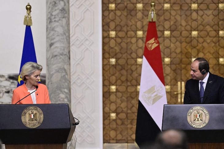 Despite these commitments, the deal was condemned by some left-wing European politicians. ‘Under the impetus of Mrs von der Leyen, Europe is being transformed into a world bank for authoritarian regimes and dictatorships,’ said the French Green MEP Mounir Satouri. He accused the Egyptian government of corruption and of political repression.