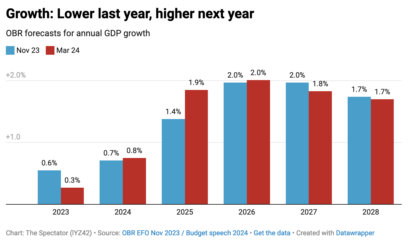 After today’s update, ministers remain in the same position today as they were yesterday: burdened with the badge of recession, quietly optimistic that the picture will soon improve. January’s figures, showing 0.2 per cent growth, suggest that Q1 this year will take the UK out of recession, confirming last year’s contraction to be as short and shallow as they come. But it will take some time to establish this: the first set of quarterly figures for 2024 aren’t released until mid-May.