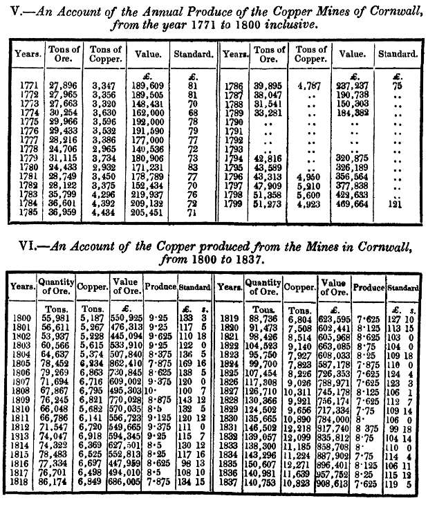 Now let’s move on to Cornish copper, of which she writes: ‘a significant amount was used to sheath slave ships.’ ‘Significant’ is a rather vague term. Significant annual production or significant in the context of Cornish production overall? If so over what period? I’m dubious of this claim. The only figures I can find begin at 1771, but they show that production of Cornish copper significantly increased after the abolition of slavery, with annual production rising between two and four times that of the years before abolition.