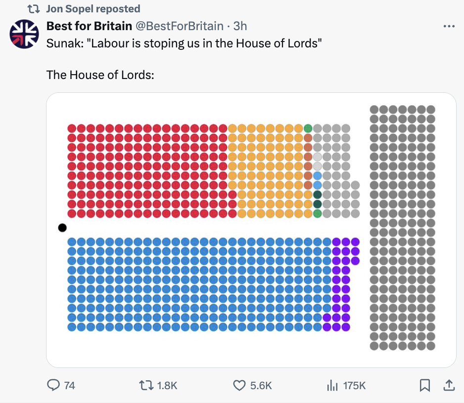 Given Tory majority in House of Lords bit rich for Rishi Sunak to blame Labour for delay to passing #Rwanda Bill. It’s because so many on his own side and crossbenchers reject the legislation