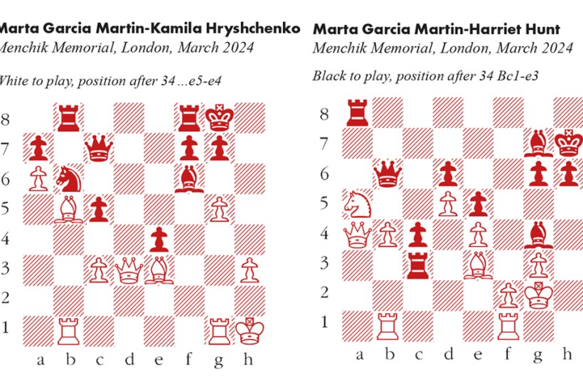 The Menchik Memorial was held last week at the Mindsports Centre in Hammersmith, to mark the 80th anniversary of Menchik’s death in 1944. A strong female field was invited for this all-play-all event, with international master Marta Garcia Martin from Spain as the top seed. She began with four consecutive victories, including a memorable finish in round four against 21-year-old Kamila Hryshchenko, who moved from Ukraine to England after the war began in 2022.