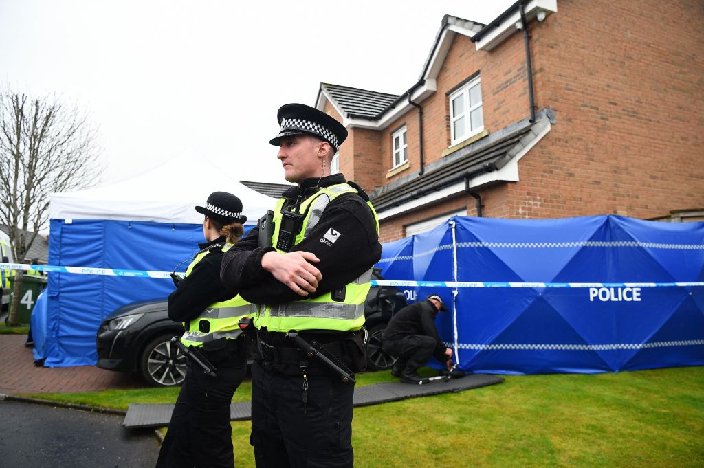 Police officers outside the home of Murrell and Sturgeon in Glasgow, 5 April 2023 (Getty Images)