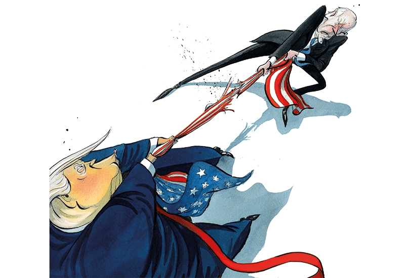 In 2020, in the first presidential debate of a Covid-riven election, the two old men set a new low for American politics by shouting over each other like drunk slobs in a bar.