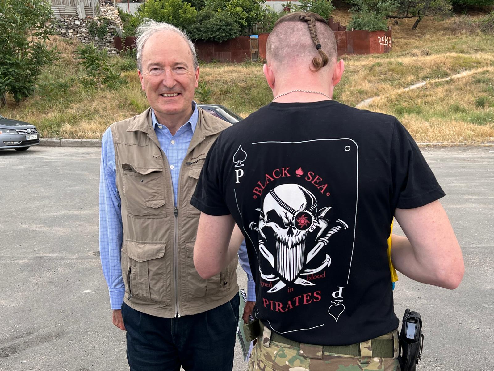It is a pastoral scene with an onion-domed church in the distance. Men fish, house martins swoop, a girl dives off a bridge and swims, a herd of goats pass – but Oleksiy, a 2014 veteran, who commands the reconnaissance unit of the 124th Brigade, now transferred into the Marines, is impatient for his boat. He has the traditional Cossack long forelock and shaven head which the Russians love to mock. On the back of his black T-shirt is a skull-and-crossbones. His men occupy small islands in the Dnipro, downstream from Kherson. Their presence controls the passage and prevents Russian assault on the city from the river. Intelligence tells him when to expect their attacks. On his iPhone, he shows me grim pictures of the Russians his men have just killed and drone footage of attacks on Russian military huts. But the price is high: last week, one marine lost an eye, another was badly injured, a third was killed; three days ago, three more were wounded. The life of each boat is a few weeks. Best for the commander are quiet little boats with an electric engine or faster ones with much greater horsepower. They best achieve their task under cover of rain. En route back to Odessa, we complete our duties – handing over the 4×4 to a newly formed brigade due for the front. The demand is huge. If you want to help satisfy it as donor or driver, please contact rc@missionukraine.uk.