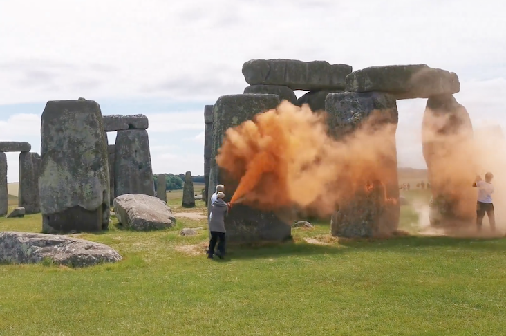 One need not cast around for signs that Britain is no longer a serious country, but the indulgence with which Just Stop Oil is treated stands out more than most. The doomsday cult has now sprayed Stonehenge in orange cornflour to protest our failure to shutter every industry in the land and relocate the entire population to a cave. Apologists for these insufferable toerags wave away objections, sighing that it’s just cornflour and no long-term damage has been done.