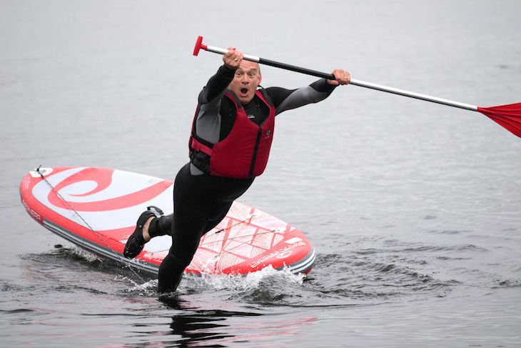 Former Lib Dem leader Tim Farron is, at least, fully supportive of the stunts. ‘I think they’re great,’ he told me. ‘Ed does fun, eye catching things, so journalists turn up and he gets the chance to then get his message across on serious issues. I was a few yards from him on a paddle board on Windermere and witnessed Sky, ITV and BBC paddling out to him to ask him about cost of living, the NHS and (of course) sewage.’
