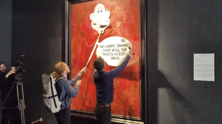 France’s culture minister Rachida Dati responded robustly to that particular outrage, saying: ‘This destruction of art by delinquents cannot be justified in any way. It must stop!’ Our current government is no more tolerant of these ‘delinquents’ than any other. But the news that Jonathan Yeo’s much-discussed portrait of Charles has been ‘redecorated’ with a picture of the cartoon character Wallace from Wallace and Gromit ­– something the activists claimed was mere ‘lighthearted action’ – will lead to a mixture of despair and anger amongst anyone who cares about art. How will independently-owned galleries – such as Mould’s – be able to display a significant work without having to worry about extortionate insurance to guard against assaults such as this?