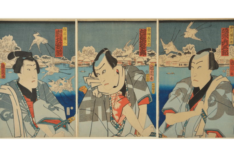The prints are from the collection of European art historian Frank Milner, who made his first purchase 50 years ago when he spotted a print of a sumo wrestler in a junk shop in Liverpool’s Penny Lane while en route to the offy. He now owns around 300, 50 of which are on loan to this exhibition. They include only one Hokusai landscape, ‘Tama River in Murashi’ (1830-32) from the artist’s 36 Views of Mount Fuji series. The iconic status of Hokusai’s ‘Wave’ has given the false impression that Japanese printmaking was all about landscape, when its principal focus was on contemporary urban life – the sort Baudelaire thought the proper terrain of the modern artist.
