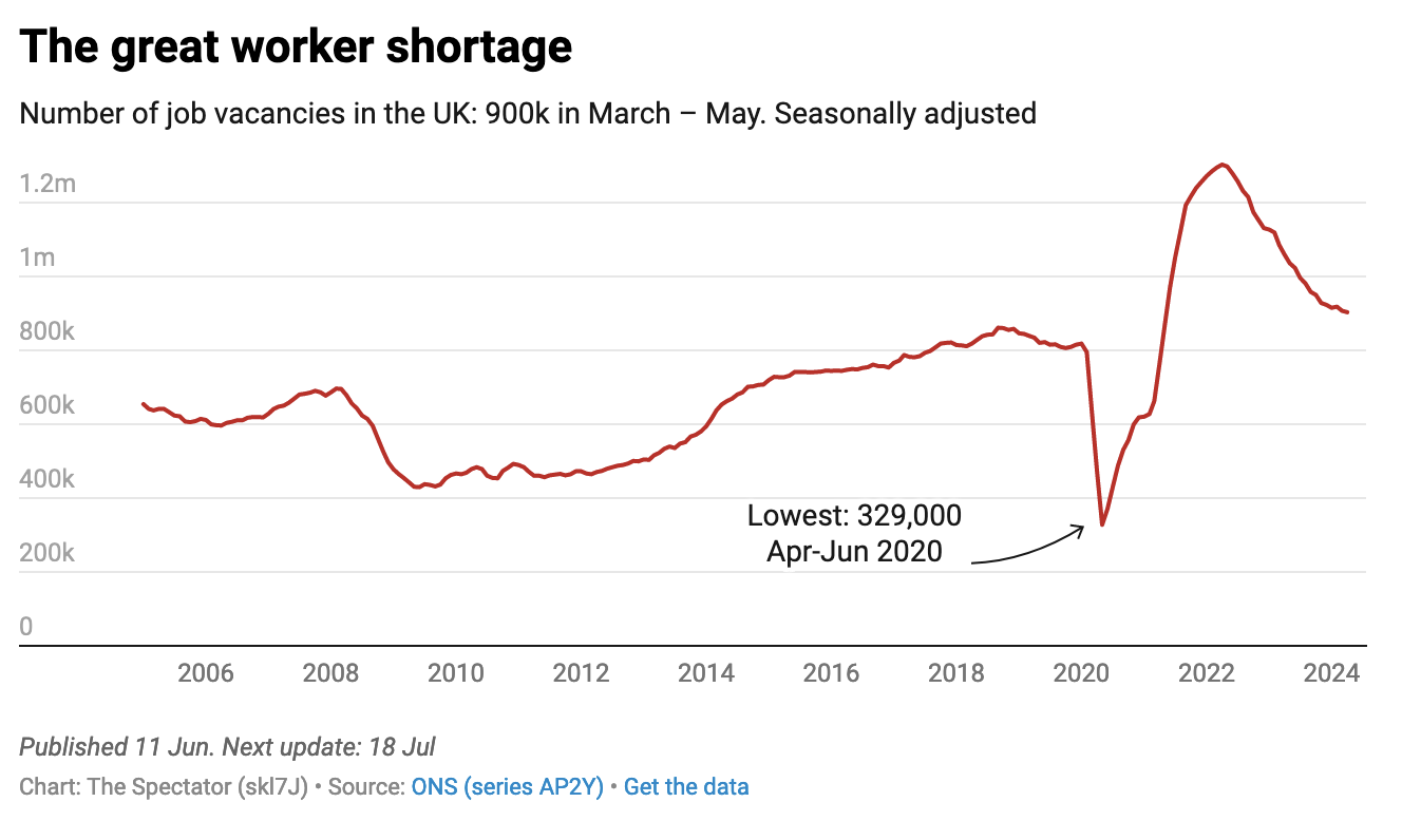 The launch of the Conservative manifesto later this morning will dominate today’s headlines. But it’s worth reflecting, before the full details are released, on how we ended up with an earlier-than-expected election. In addition to ministers’ fear that the small boats figures would rise this summer – and flights to Rwanda would be grounded – there was also growing concern that the economic data wouldn’t tell the good news story they wanted to take into an autumn election. Today’s labour market update complicates that theory.