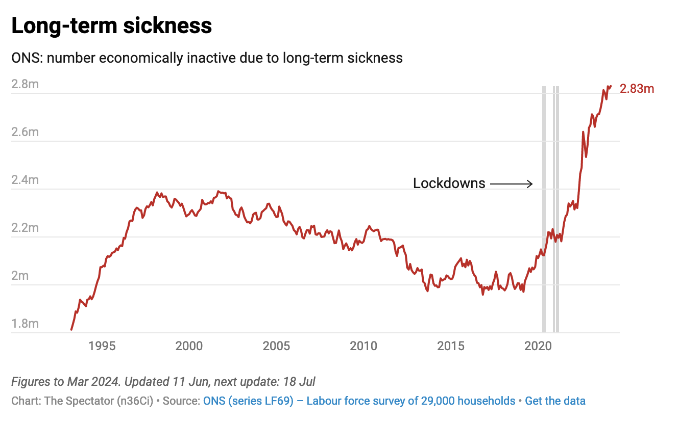 The Tories are expected to unveil £12 billion worth of welfare cuts in a bid to get people back to work. Using such a blunt tool is something of an admission that attempts to reverse this out-of-work trend have failed over the past few years. It also draws attention to how high these numbers have risen in the last Tory government, and reminds the public that furlough (which Sunak has been eager to speak about since the election campaign began) was not without its consequences.