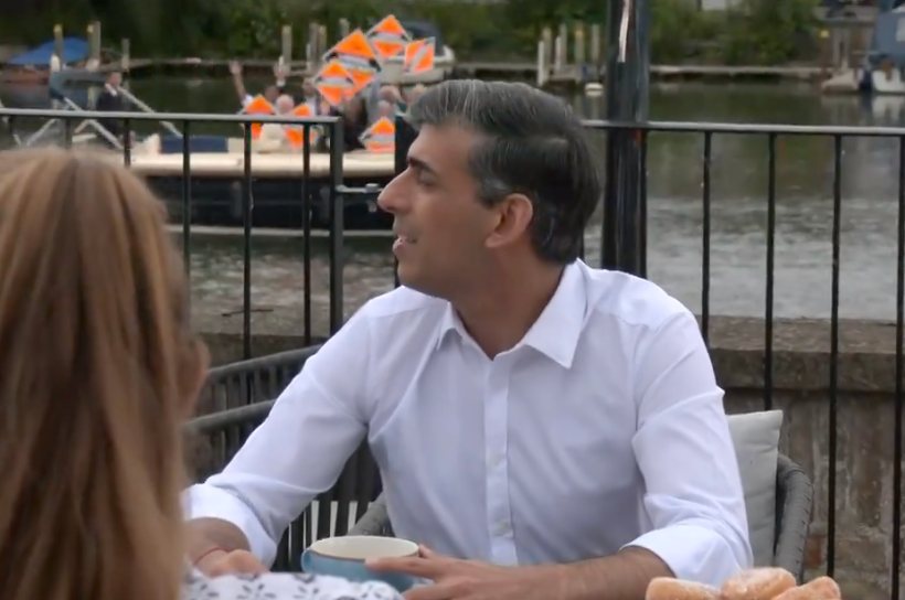 Don’t think Rishi Sunak was aware that a boat filled with Lib Dems popped up behind him on the campaign trail today…