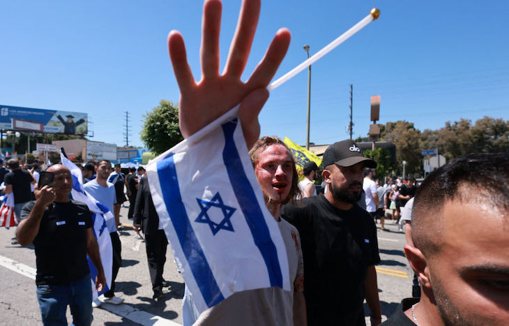 To be clear, I don’t want to see anyone punched outside a synagogue. But then, I don’t want to see protest of any kind outside a synagogue. What happened in LA at the weekend was horrifying. It took place at the Adas Torah synagogue in the heavily Jewish area of Pico-Robertson. ‘Pro-Palestine’ protesters turned up with Palestine flags. They chanted about intifada. One was heard saying, ‘There is only one solution – intifada revolution’.