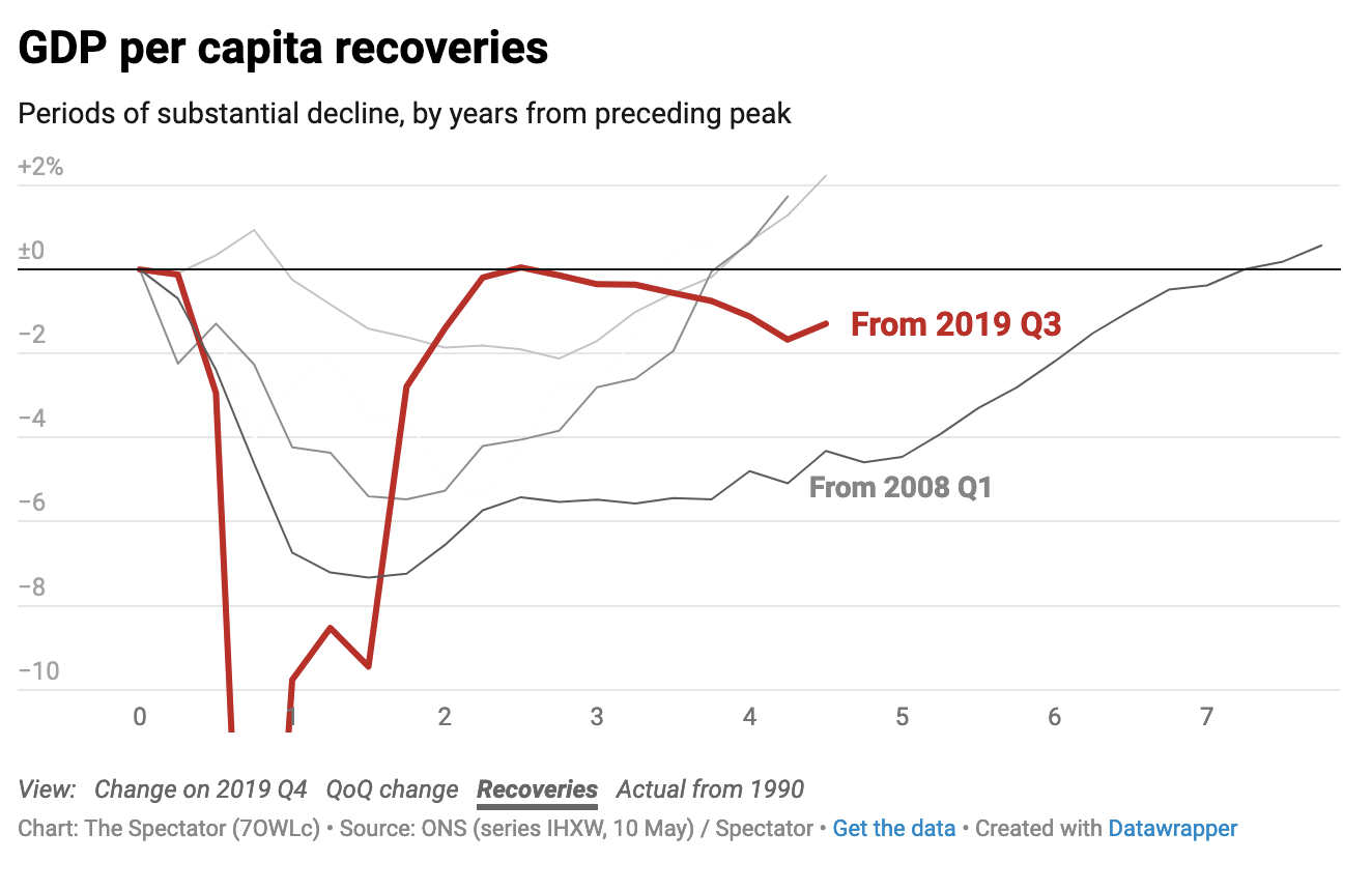 It’s a hard argument to make even with more positive data these days, as living standards have still not recovered to their pre-pandemic levels. ‘I’m not going to claim everything is fine,’ shadow chancellor Rachel Reeves said on the media round this morning. It’s not really a point that the Tories dispute – they are careful not to exaggerate or oversell the success of getting inflation under control. But it means there are restraints on how hard they can push their core election message. Of course if you are having to tell people that they are better off than they were six months or a year ago, you are already on the back foot.
